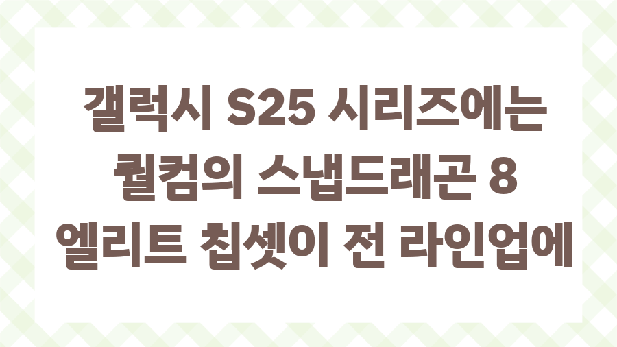 A. 현재로서는 갤럭시 S25 시리즈 전 라인업에 퀄컴 스냅드래곤 8 엘리트 칩셋이 탑재될 가능성이 높은 것으로 보입니다.