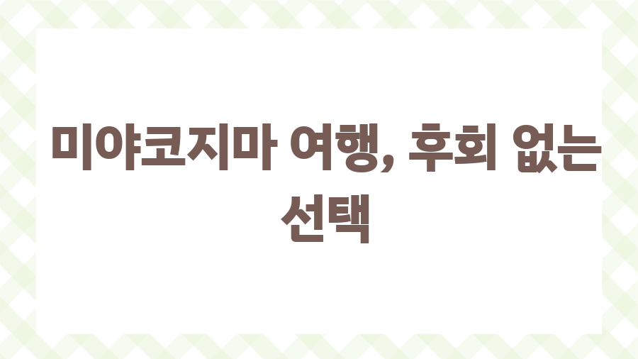 오늘 알아본 정보들을 바탕으로 미야코지마 여행을 계획해보세요. 분명 잊지 못할 멋진 추억을 만들 수 있을 겁니다.