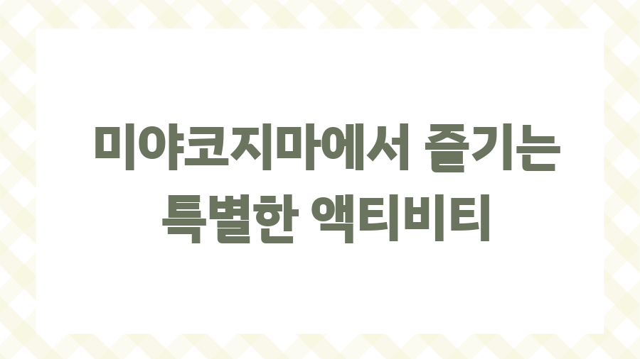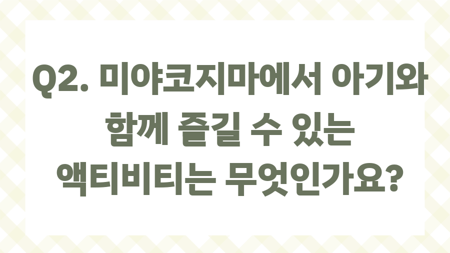 Q2. 미야코지마에서 아기와 함께 즐길 수 있는 액티비티는 무엇인가요?