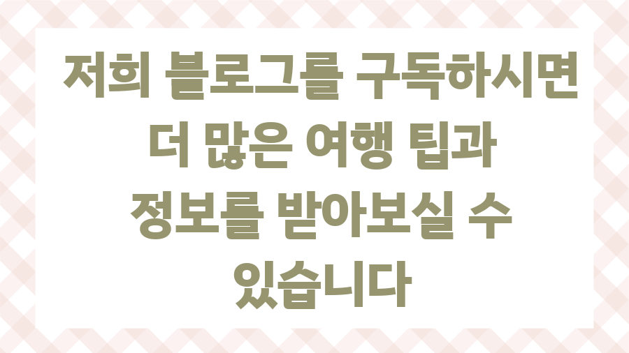 저희 블로그를 구독하시면 더 많은 여행 팁과 정보를 받아보실 수 있습니다! 다음 게시글에서 만나요!