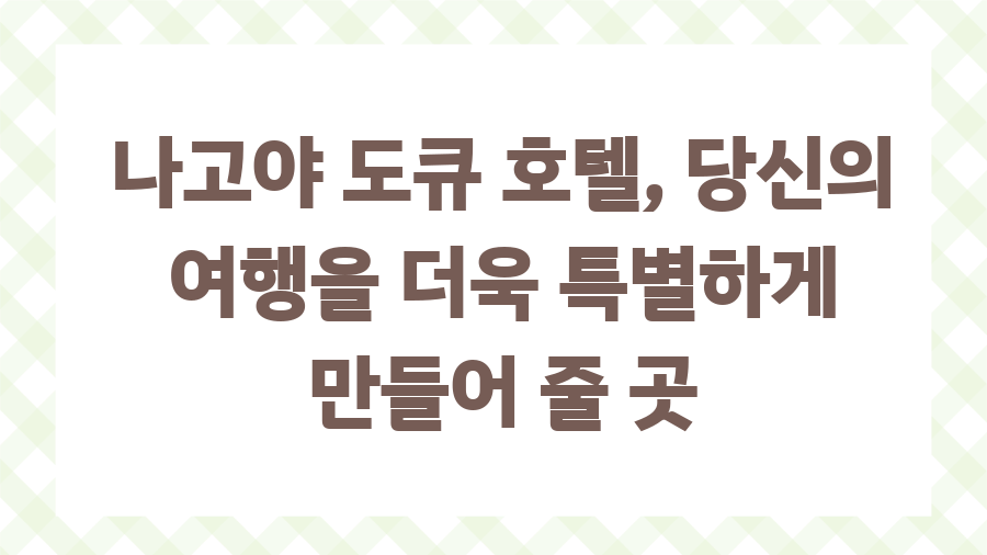 나고야 도큐 호텔, 당신의 여행을 더욱 특별하게 만들어 줄 곳