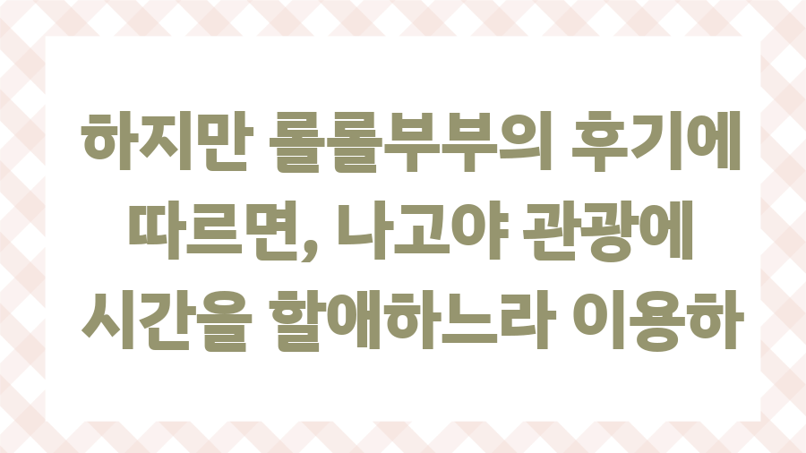 롤롤부부는 하브스 본점, 아츠타 호라이켄, 야바톤, 라무치이, 코메다 커피 등 인근 맛집들을 추천하고 있으니, 참고하시면 좋을 것 같습니다. 나고야의 맛을 제대로 느끼고 싶다면, 나고야 도큐 호텔이 최고의 선택이 될 것입니다.