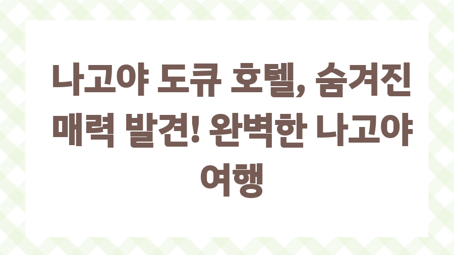 나고야 여행 계획 중이신가요? 도시의 활기와 편안한 휴식을 동시에 누리고 싶다면 나고야 도큐 호텔을 주목해보세요. 사카에라는 최고의 입지에 위치해 쇼핑, 맛집, 관광 명소까지 모두 가까이 누릴 수 있으니까요. 과연 나고야 도큐 호텔이 어떤 매력을 지녔는지, 지금부터 자세히 파헤쳐 보겠습니다!