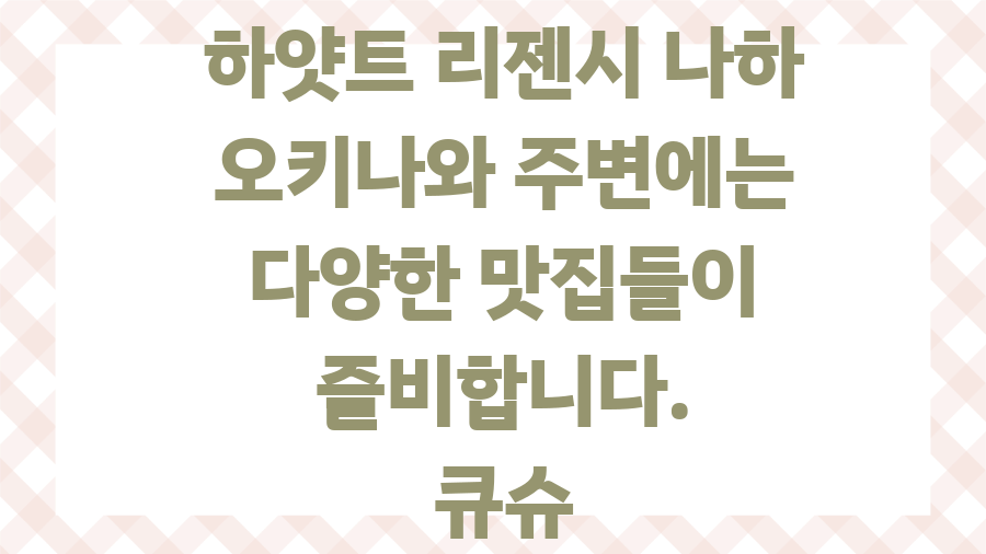 오늘 알아본 하얏트 리젠시 나하 오키나와, 어떠셨나요?
