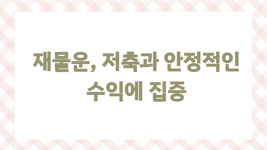 재물운은 비교적 좋습니다. 큰돈을 벌기보다는 꾸준히 저축하고 **안정적인 수익을 확보**하는 것이 중요합니다. 투자보다는 **저축**에 집중하여 재정적인 안정을 다져야 합니다. 마치 튼튼한 기초 위에 높은 빌딩을 짓는 것과 같습니다. 지금의 안정적인 기반이 미래의 풍요로움을 만들어낼 것입니다.
