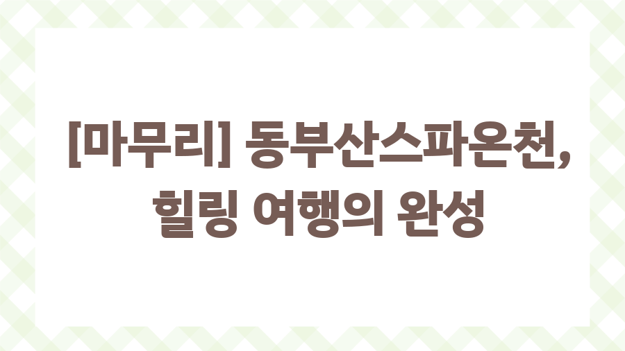 [마무리] 동부산스파온천, 힐링 여행의 완성