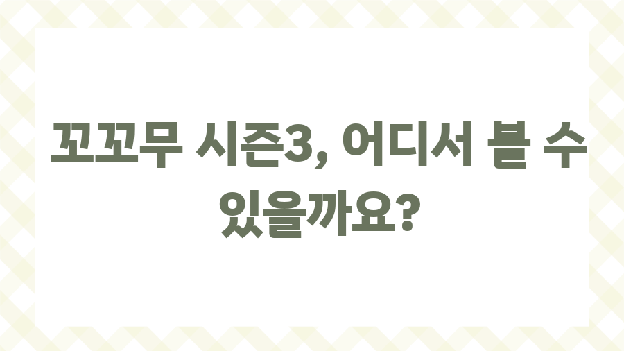 많은 분들이 꼬꼬무 시즌3를 어디서 볼 수 있는지 궁금해하시는데요. SBS에서 목요일 밤 10시 20분에 방송되는 꼬꼬무는 본 방송을 놓치셨더라도 걱정 마세요! 다양한 OTT 플랫폼을 통해 편리하게 다시 볼 수 있습니다.