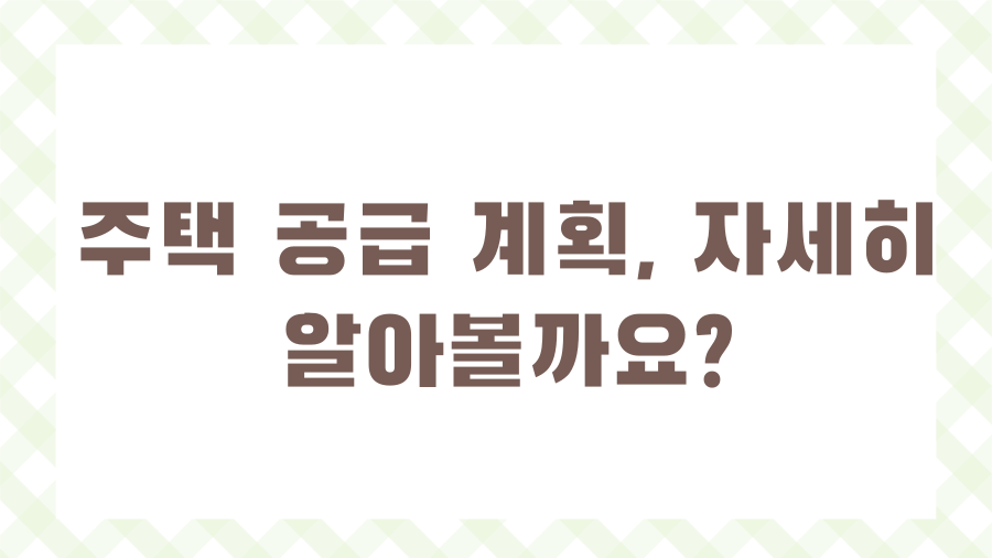 주택 공급 계획, 자세히 알아볼까요?