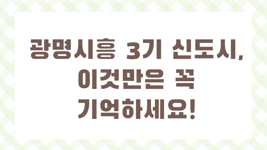 광명시흥 3기 신도시, 이것만은 꼭 기억하세요!