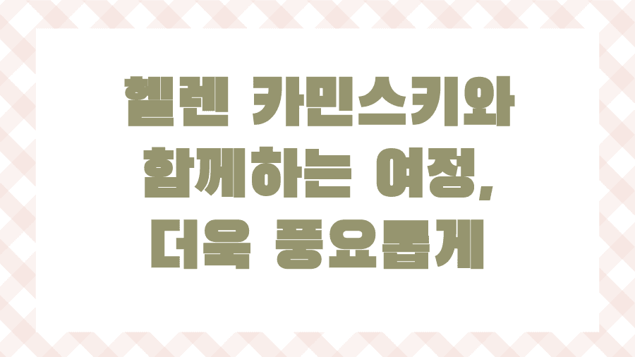 혹시나 망설이고 계셨다면, 이 글을 통해 헬렌 카민스키와 함께하는 여정을 더욱 풍요롭게 만들어보세요!