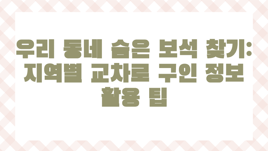우리 동네 숨은 보석 찾기: 지역별 교차로 구인 정보 활용 팁