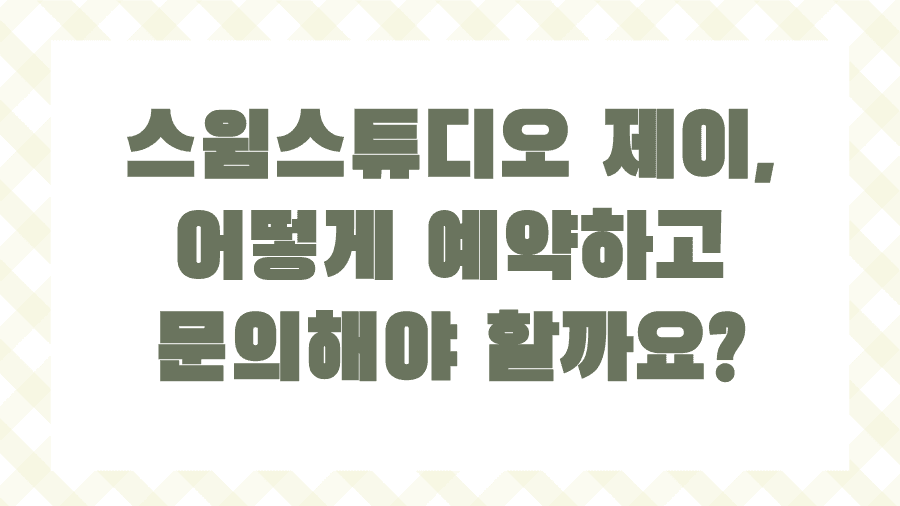 예약 및 문의 방법 | [블로그 컨텐츠에서 제공하는 스윔스튜디오 제이 예약 및 문의 방법을 요약하여 기입해주세요. (예: 웹사이트 예약, 전화 문의 등)] |