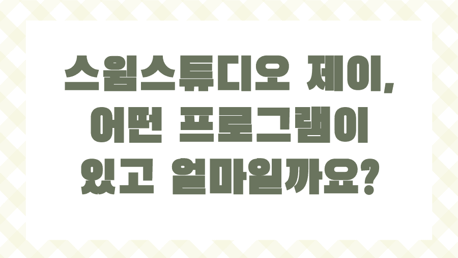 가격대 | [블로그 컨텐츠에서 제공하는 스윔스튜디오 제이의 대략적인 가격대 또는 요금 체계 정보를 요약하여 기입해주세요. (예: 원데이 클래스 O만원대, 월 회원권 O만원대 등)] |