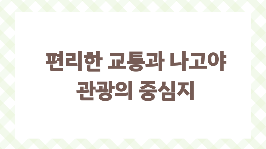 또한, 호텔 근처에는 버스 정류장도 있어 나고야 시내뿐 아니라 주변 지역으로의 이동도 용이합니다. 특히, 공항 리무진 버스를 이용하면 호텔까지 편리하게 이동할 수 있다는 장점이 있습니다. 나고야 여행의 효율성을 높이고 싶다면, 나고야 칸코 호텔의 위치는 최고의 선택입니다.
