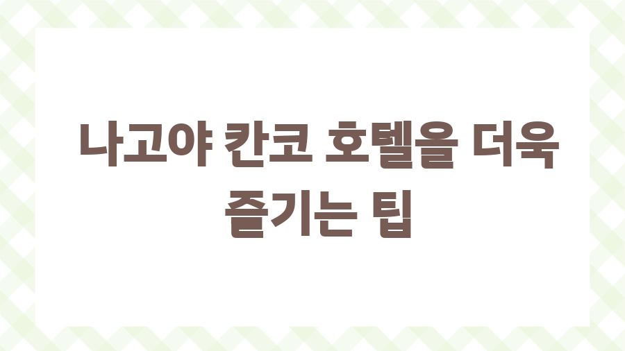 나고야 칸코 호텔을 더욱 즐기는 팁