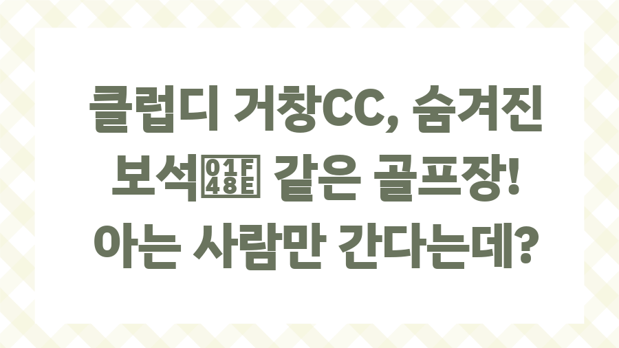 골프 라운딩, 어디서 즐겨야 할까요?탁 트인 자연 속에서 시원한 샷을 날리고 싶은 골퍼들의 마음은 늘 같습니다.오늘은 경남 거창에 숨겨진 보석 같은 골프장, 클럽디 거창CC에 대해 자세히 알아보겠습니다.과연 이곳은 어떤 매력을 가지고 있을까요? 함께 파헤쳐 볼까요? 클럽디 거창CC, 왜 가야 할까? 매력 포인트 파헤치기클럽디 거창CC는 단순히 공을 치는 공간을 넘어, 아름다운 자연과 함께 전략적인 플레이를 즐길 수 있는 곳입니다. 위치 및 기본 정보클럽디 거창CC는 경상남도 거창군 신원면 감악산로 436-58에 자리 잡고 있습니다.감악산의 아름다운 풍경을 배경으로 라운딩을 즐길 수 있다는 점이 큰 매력입니다. 예약은 클럽디 거창CC 공식 홈페이지와 예약 시스템을 통해 실시간으로 가능합니다. 문의 사항은 ..
