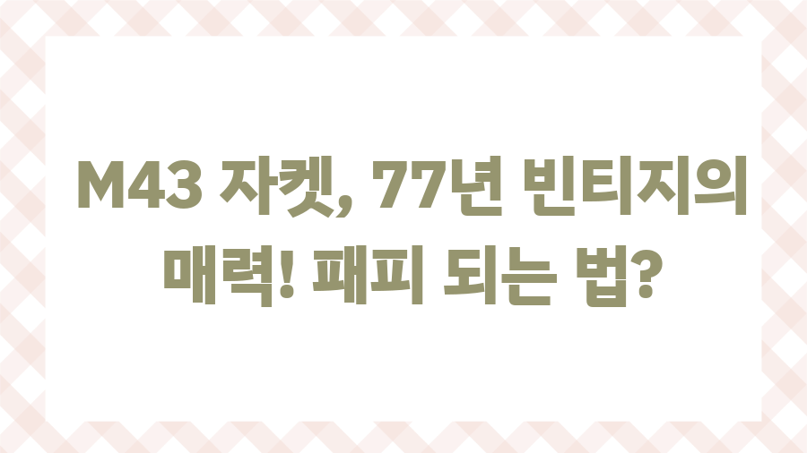 밀리터리 패션, 어디까지 알고 계시나요?혹시 M43 자켓에 대해 들어보셨나요? 단순한 군복을 넘어, 패션 아이콘으로 자리매김한 M43 자켓!오늘은 그 매력 속으로 여러분을 안내합니다.M43 자켓의 역사부터 디자인 특징, 그리고 현대적인 활용법까지,지금 바로 파헤쳐 볼까요? M43 자켓, 시대의 흐름을 담다M43 자켓은 1943년 미군이 개발하고 보급한 군복으로,'M43 필드 자켓'이라는 이름으로 더 잘 알려져 있습니다.놀랍게도 극소량만 생산되어 1944년부터 짧은 기간 동안만 사용되었죠. 이후 M50, M51로 대체되며, 최종적으로 우리가 잘 아는 M65필드 자켓으로 발전하게 됩니다.M43 자켓은 단순한 군복을 넘어, 현대 패션에 큰 영향을 미친숨겨진 역사의 산물이라고 할 수 있습니다. 전투복에서 패션 ..
